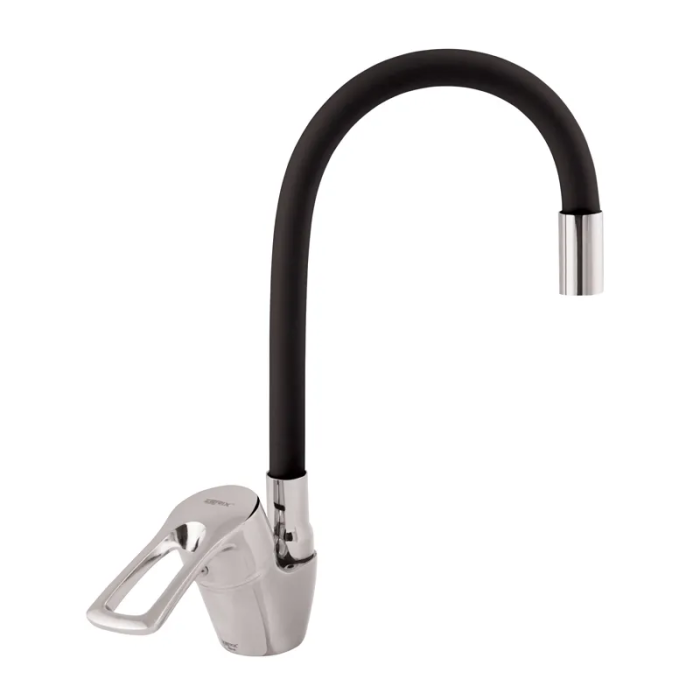 Змішувач для кухні Zerix YUB 181 з чорним гнучким виливом (ZX0438)