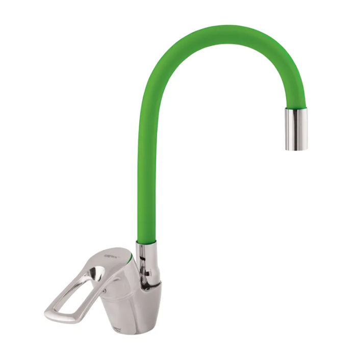 Змішувач для кухні Zerix YUB 181 з зеленим гнучким виливом (ZX0437)