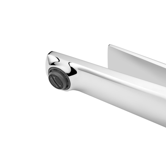 Корпус змішувача виготовлений із високоякісної латуні та вкритий глянцевим хромом, який забезпечує стійкість до зношування й зручність у догляді. Лаконічні плавні лінії та литий вилив створюють сучасний вигляд, що гармонійно впишеться у ванну кімнату.