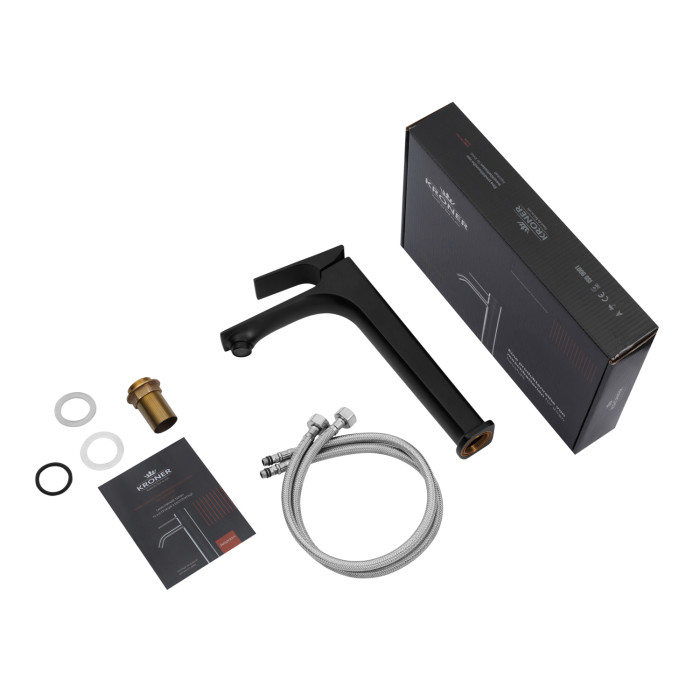 Змішувач для раковини Kroner KRP Vog-SCH010-3 (чорний) — стильний і сучасний змішувач, виконаний в глибоких чорних відтінках, який ефектно підкреслює інтер'єр ванної кімнати. Графітове покриття створює ефект стриманої елегантності та візуально гармонує з іншими елементами дизайну в стилях мінімалізм, модерн або лофт.