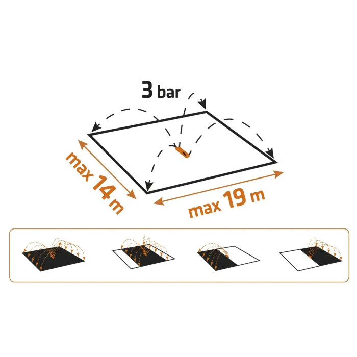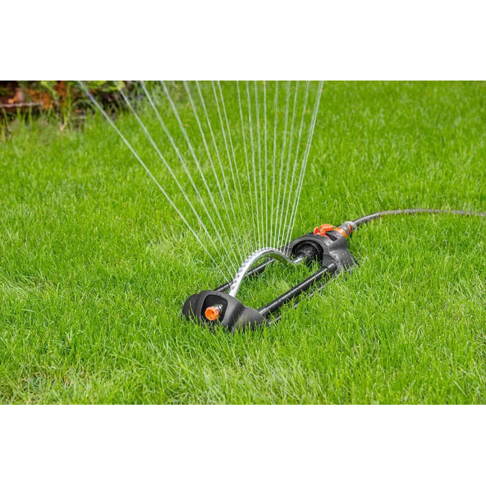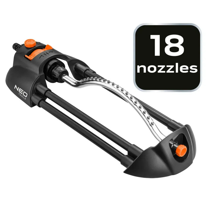 Зрошувач дощовий Neo Tools, дощувач маятниковий, 18 сопел в металевому елементі, регулювання діапазону та сили поливу, площа розпилення 14х19м