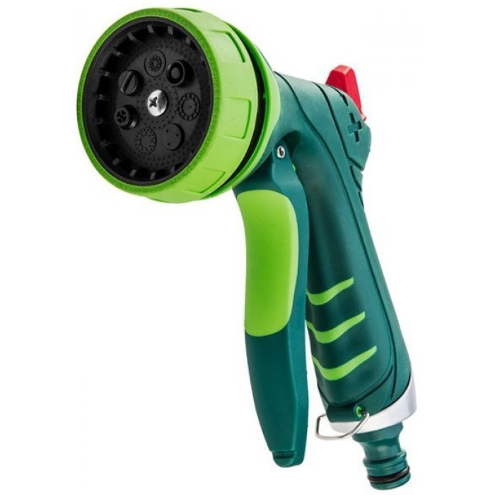 Спринклер пістолетного типу з 7 вбудованими функціями регулювання потоку від садового бренду VERTO. Це практичний, багатосезонний пристрій, необхідний для поливу зелених насаджень. Спринклер оснащений можливістю змінювати потік води - від м'якої крапельки до сильного, концентрованого струменя. Завдяки чіткому позначенню типів функцій на голові робота в саду стане приємнішою та ефективнішою. Спринклер також має передній важіль з фіксатором, який дозволяє швидко запускати і зупиняти струмінь води. Виріб виготовлено з якісного пластику, з додатковою нековзкою прогумованою ручкою. Спринклер призначений для шлангів з параметрами: ½” – ¾””.